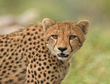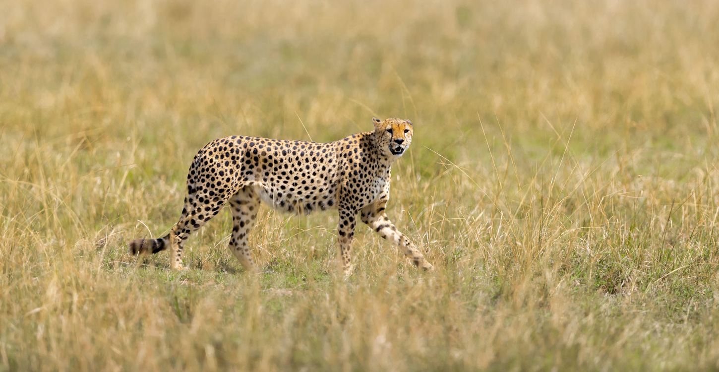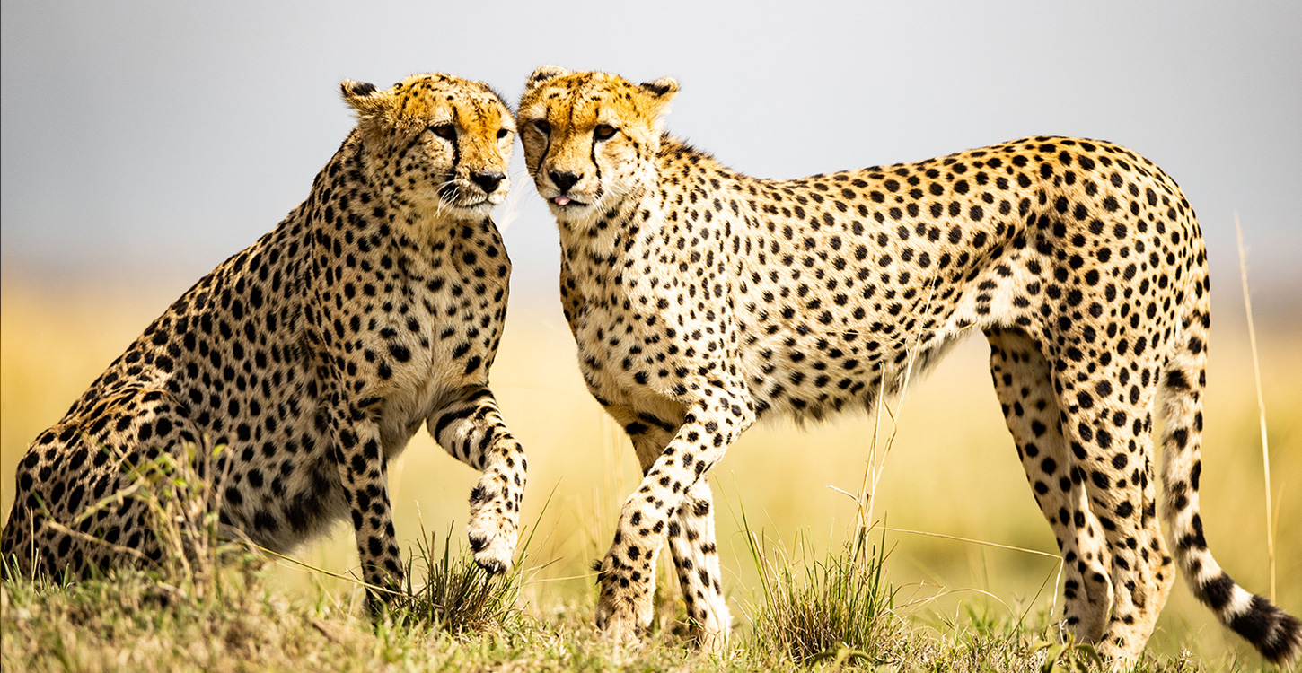 The fastest land animal, Cheetahs can reach a top speed above 100 kilometers per hour (in short bursts), accelerating from 0 to 70 in just 2.5 seconds. This is a result of very flexible spines which curve far enough to move the hind feet in front of the forefeet. The light skeleton makes it easier to carry its weight while running, the long tail is crucial for balance, and the large nostrils and large heart combine to enable faster breathing and faster pumping of blood, which supplies the muscles with more oxygen while running. They are found in three main social groups, females and their cubs, male "coalitions", and solitary males. While females lead a nomadic life searching for prey in large home ranges, males are more sedentary and instead establish much smaller territories in areas with plentiful prey and access to females. The closest relatives of cheetahs are cougars or puma and jaguarundi. Together, these three form the Puma lineage.